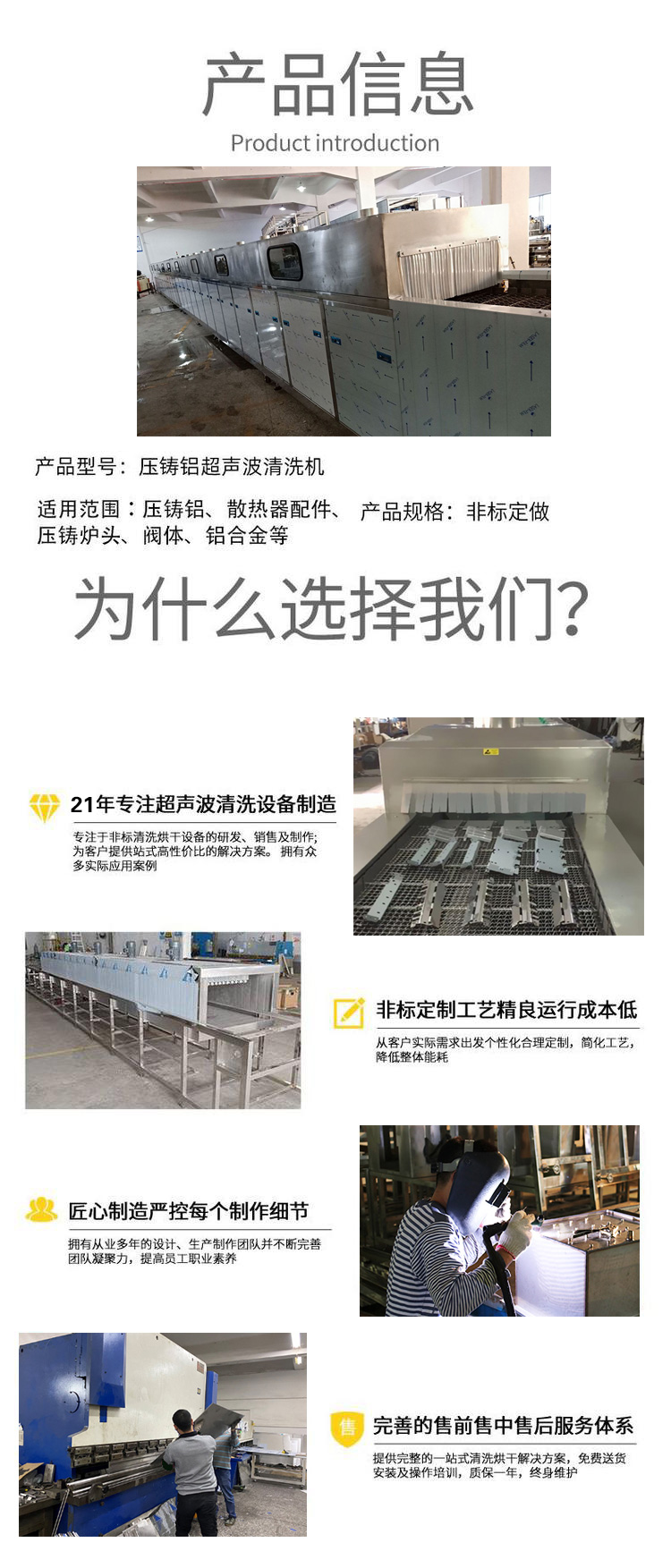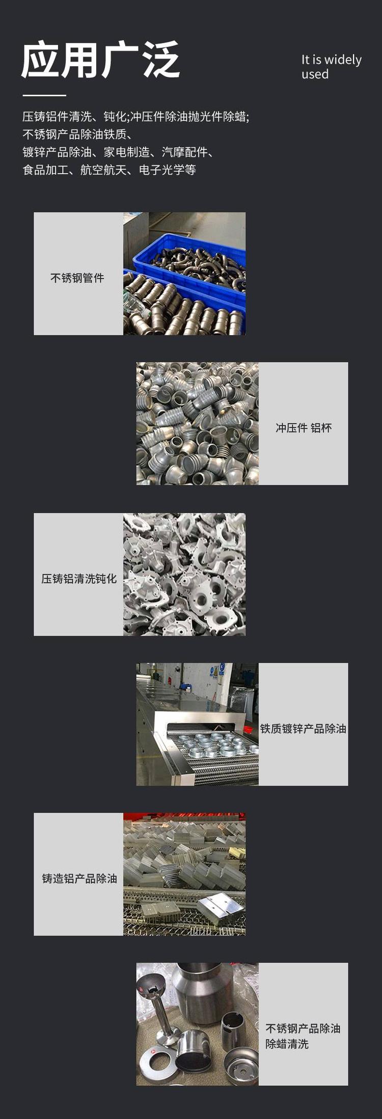 鋁合金壓鑄件超聲波清洗機(jī)是一臺履帶式超聲波清洗烘干線,采用特制網(wǎng)鏈傳動輸送工件,具賄超聲波粗洗、超聲波精洗、鼓泡過水、切水、烘干、等功能的連續(xù)式清洗烘干設(shè)備。只需要人工將工件放在特制的傳動網(wǎng)鏈上,工作時,清洗工件置于輸送帶上,依次通過清洗室、清洗室、漂洗室、切水室、烘干室完成清洗、漂洗、過水、吹水、烘干等流程后出料,超聲波槽回液經(jīng)過濾處理循環(huán)使用,鋁合金壓鑄件超聲波清洗機(jī)具有工位多,功能全,結(jié)構(gòu)合理,操作方便,清洗效果好的優(yōu)點(diǎn),這對于流水線零件的清洗,改善勞動環(huán)境,節(jié)省勞動力,提高清洗和吹干質(zhì)量,具有重要的意義